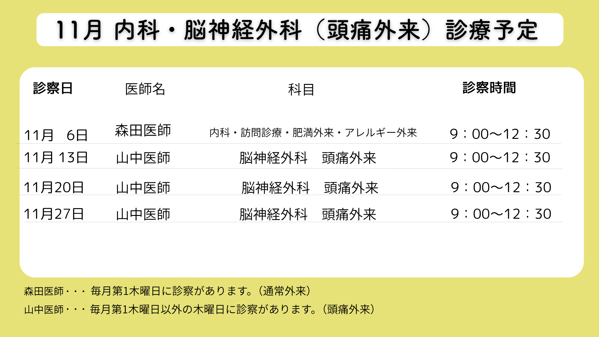 木曜日の午前のみ、月1の不定期で森田医師の診察